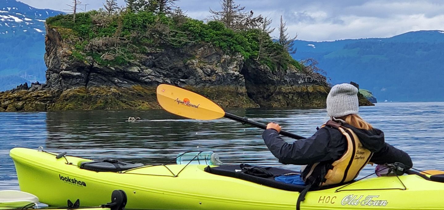 At 11:30am we board a boat for a six-hour wildlife viewing and glacier cruise, into the Kenai Fjords National Park. We will go right up to an active tidewater glacier. A tidewater glacier terminates in the ocean. It is common to see chunks the size of cars falling off into the green water.