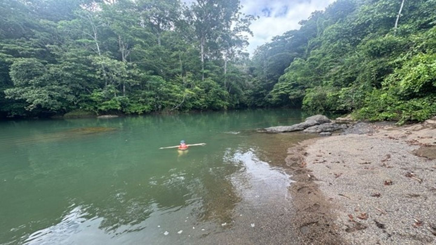 Upon landing in Puerto Jiménez, transfer by minivan (approximately two hours) to Drake Bay, passing the outskirts of Corcovado National Park. After lunch, hike two hours along a remote beach to Rio Claro—a stunning turquoise tidal river flowing from the rainforest for a refreshing swim.